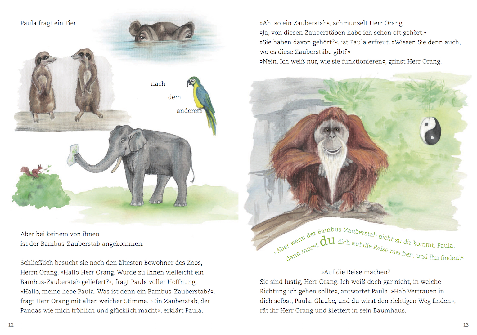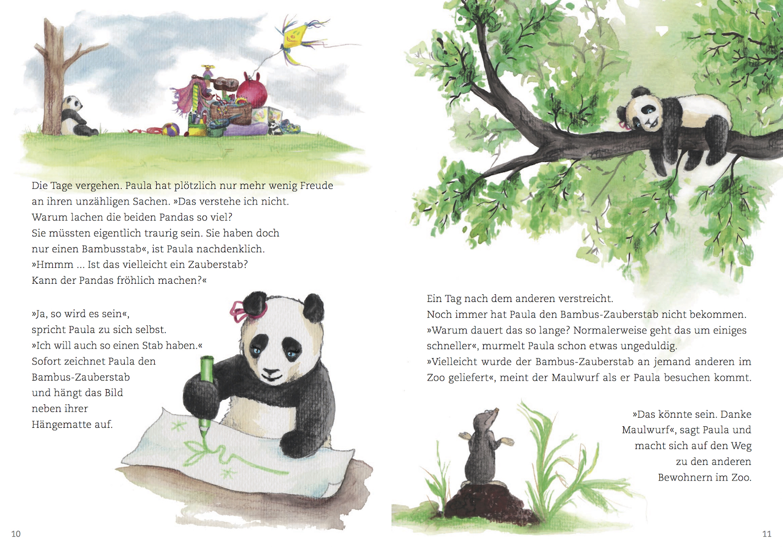 Paula Panda lebt in einem Zoo und hat alles, was man sich wünschen kann – doch sie ist nicht glücklich. Auf der Suche nach dem geheimen Bambus-Zauberstab entdeckt sie, dass wahres Glück nicht in Besitz, sondern in Dankbarkeit, Teilen und Achtsamkeit liegt.